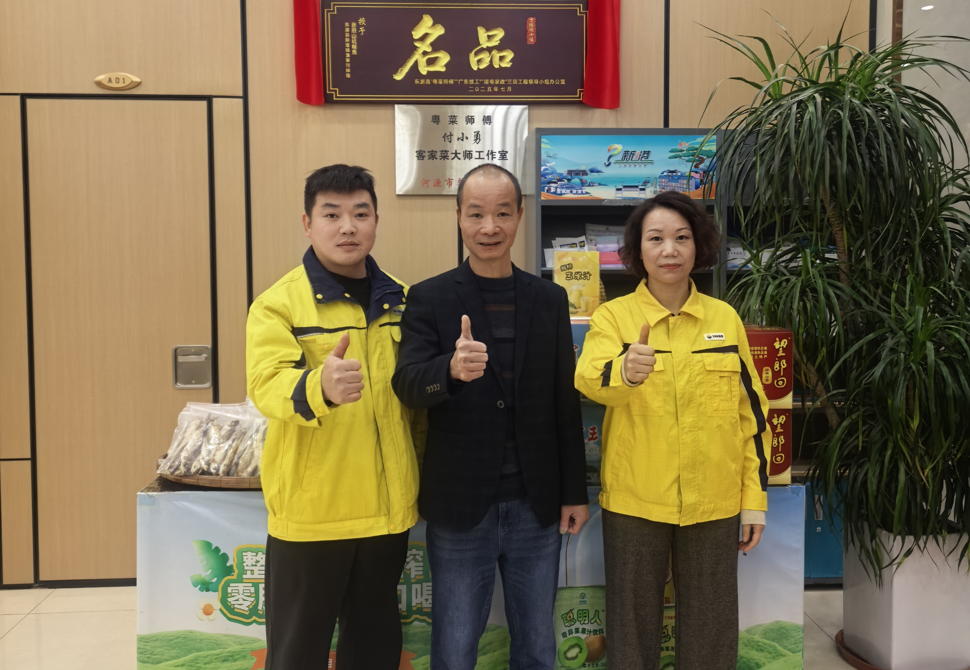 工作人员和商户合影