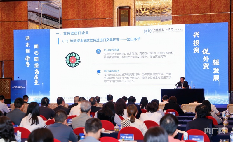 央广网广州4月9日消息(记者张顺鹏)4月9日,“活水润南粤 同心同绘高质量”——兴投资、促外贸、强发展工作宣介会在广州举行。宣介会由广东省商务厅和进出口银行广东省分行、深圳分行联合主办。进出口银行党委委员、副行长陈斌,广东省商务厅等政府部门、重点合作企业有关负责人出席会议。