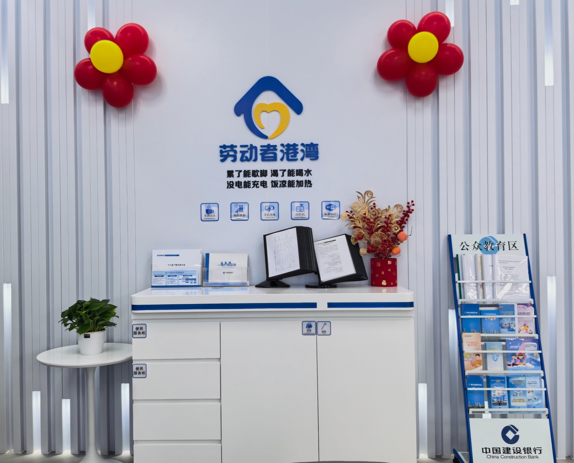 建行广州分行营业部营业室进一步完善了“劳动者港湾”设施,优化休息、饮水、充电、急救等基础便民设施,为环卫工人、快递小哥、交警等户外工作者开放,打造暖心休憩驿站,让户外工作者冷可取暖、累可歇脚,用细微服务传递金融温情。