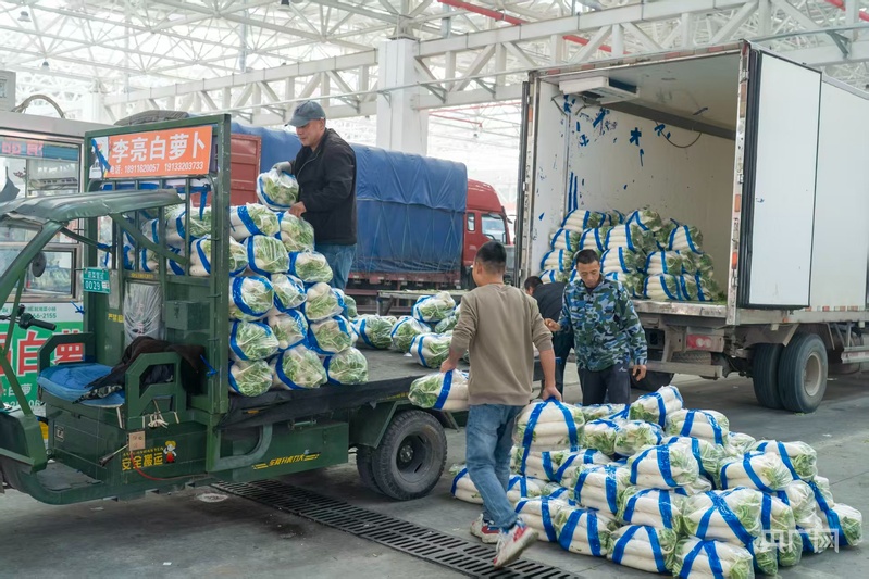 上午10点,市场智慧大屏上数据醒目:日均交易量近8万吨。相关负责人介绍,为保障春节供应,市场联动全国产区,确保鲜品“不断档、不涨价”。另一边,市场检测中心内正加紧检测进场果蔬。检测员拿起试剂瓶说,“从源头到市场,我们会多道关口把好食品安全关,让老百姓买得放心。”