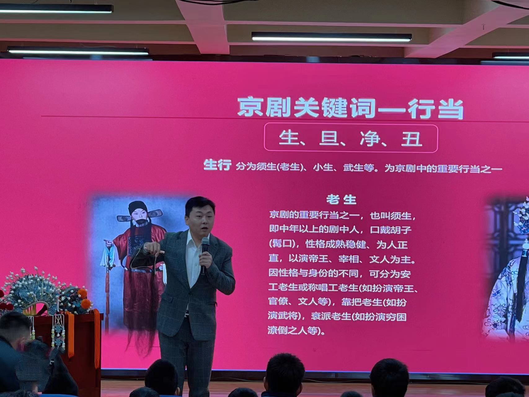 活动现场,河北省京剧艺术研究院优秀老生演员龚海忠为同学们讲授了京剧四大行当以及戏曲服饰特性等基础知识,并通过示范和指导,让同学们在互动中感受国粹的文化魅力。随后,老师们表演了河北梆子《大登殿》,保定老调《忠烈千秋》《红灯记》等精彩选段,现场不时响起热烈的掌声和欢呼声。