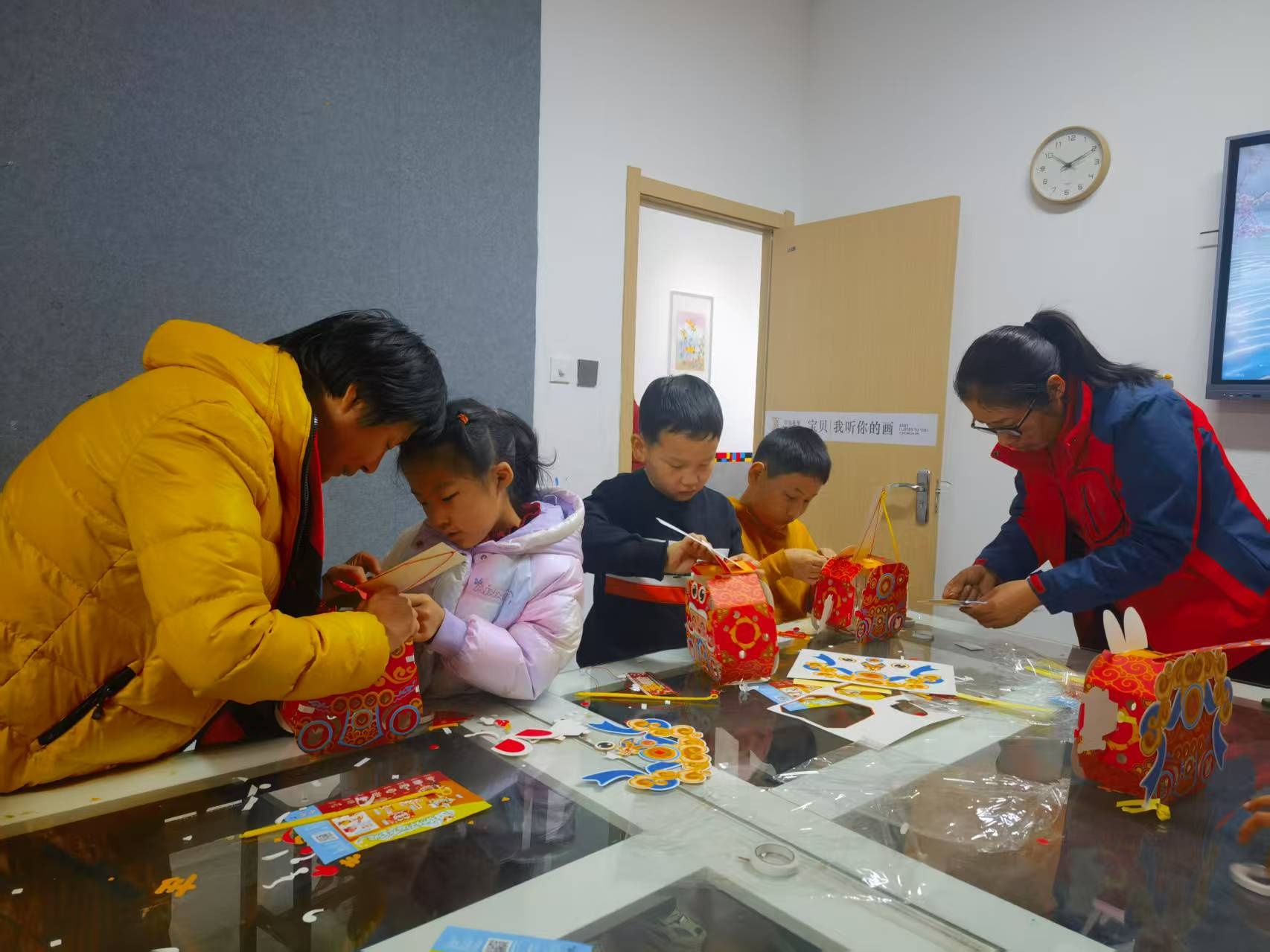 在手工制作区域,志愿者详细讲解了灯笼的制作方法和注意事项,并亲自示范,孩子们积极尝试,逐一组装材料。不一会儿,一个个制作精美的小灯笼在孩子们的手中诞生。
