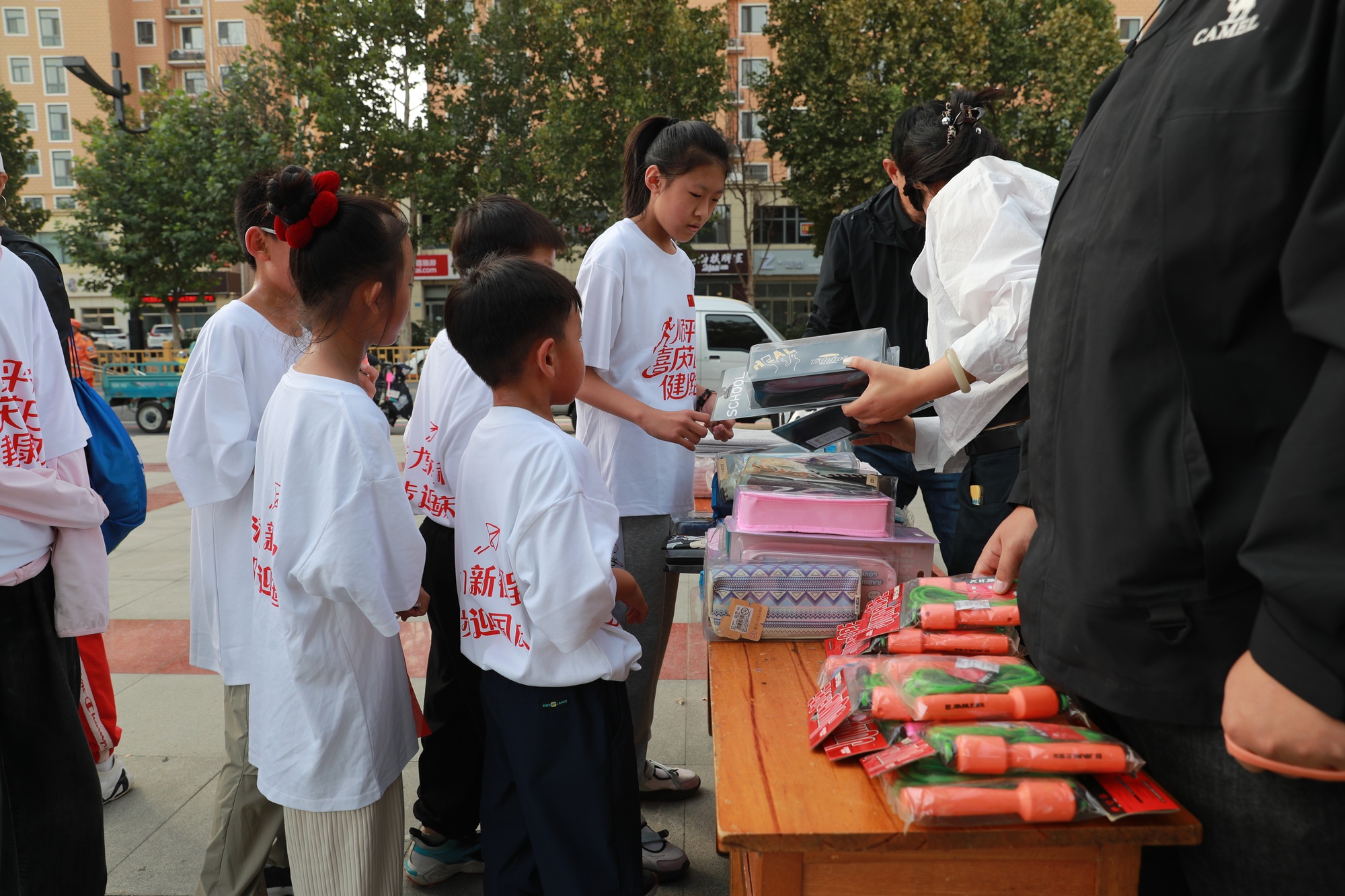 亲子跑参赛选手赛后领取纪念品(赵端 摄)