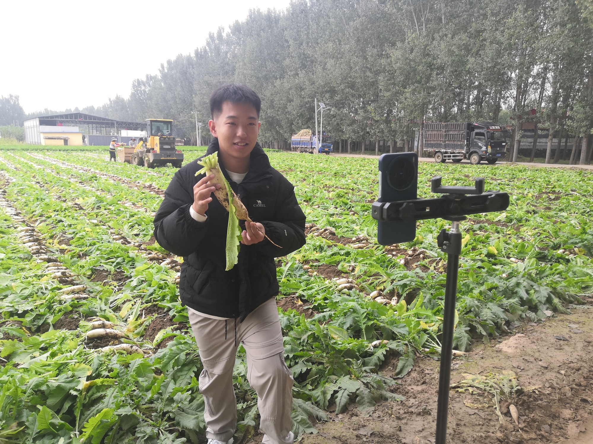 大学生农业职业经理人正推介白萝卜(梁洁 摄)