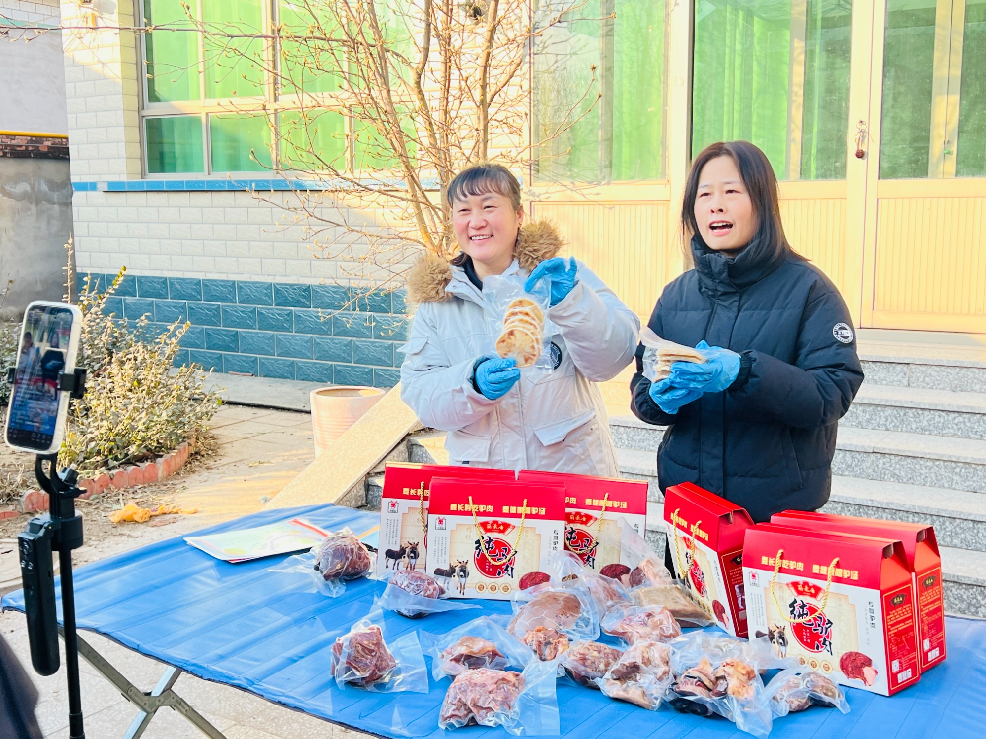 近日,河北省涞水县王村镇丽景居家庭农场内,驴肉香气与直播声交织。农场负责人孙丽正带领村民曾祥英、沈艳华,对着镜头向网友推介特色驴肉产品。而两个多月前,她们还是对直播带货一窍不通的普通农妇。