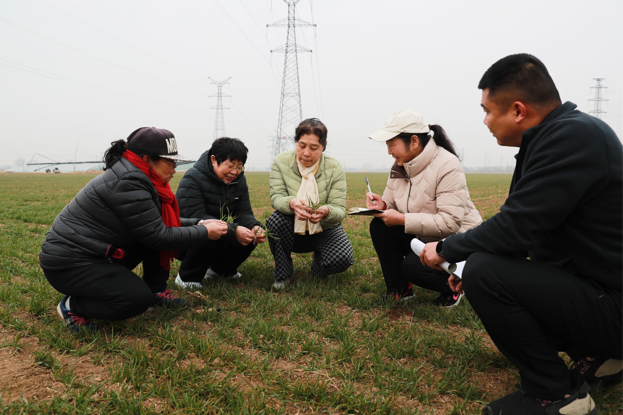 在现场,农技人员实地查看小麦分蘖、叶色、冻害情况,测量土壤墒情和苗高,并开展无人机植保喷防、小麦病虫害防治等技能培训,为小麦精细化春管提供精准“导航”。“我们合作社一共流转了1800亩土地种植冬小麦,目前一二类壮苗占比较高,土壤墒情好。下一步,我们将按照农技专家的意见进行无人机施肥和病虫害防治。”合作社负责人韩建录说。