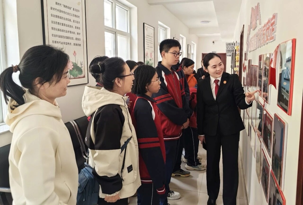 此外,家长与学生有序参观审判庭、心理咨询室、调解室等功能区域,零距离感受司法流程、体验法庭文化,直观感受司法的庄严与权威。