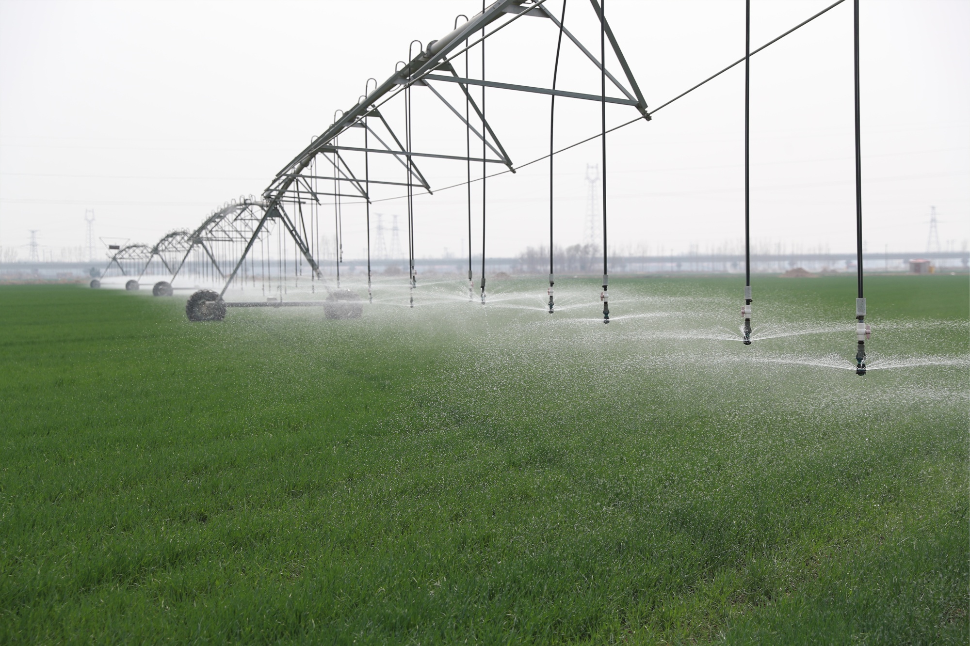 喷灌机对小麦进行均匀灌溉(吴潇 摄)