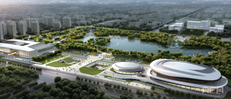 高碑店体育馆和综合馆项目鸟瞰图(央广网发 高碑店市委宣传部供图)
