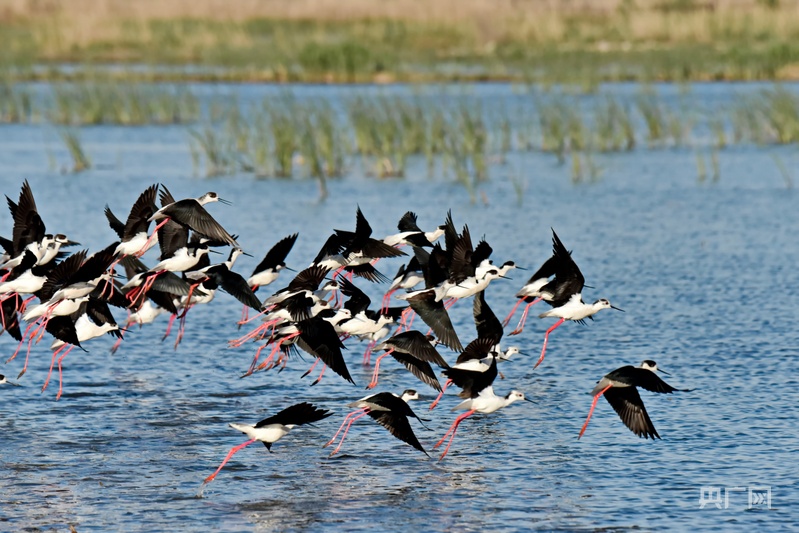 央广网雄安3月26日消息 阳春三月,阳光映照下的白洋淀泛着粼粼波光。清晨,摄影爱好者周龙山扛着相机登上观景台。镜头里,一群长脚鹬翩然掠过泛着波光的湖面,远处苇荡新绿初绽,与碧波相映成画。