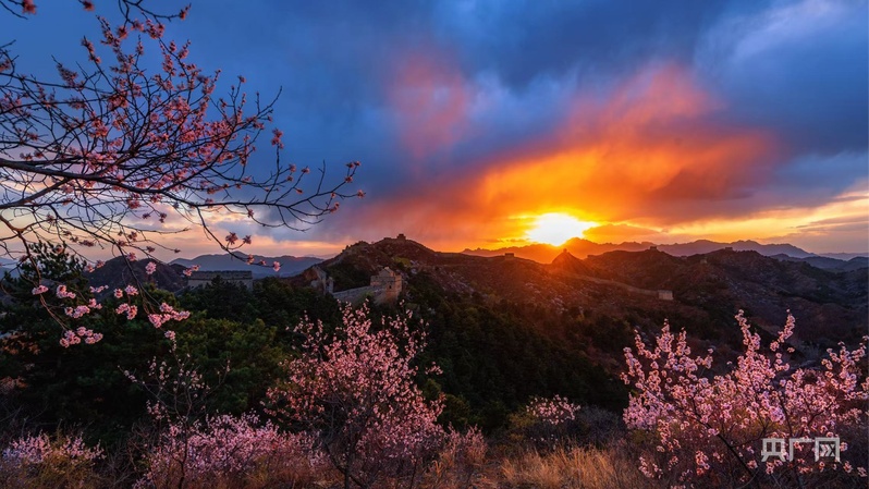 承德金山岭长城杏花(央广网发 承德市委宣传部供图)