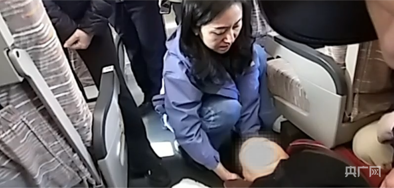 据现场乘客回忆,张继航担心晕倒的乘客头部磕碰受伤,一直用双手垫在其头下,持续了约 20 分钟。这段时间里,她一边安抚病人情绪,一边找到其随身携带的药物喂服,并及时向赶来施救的同车乘客医生说明情况。“医生,阿姨脉搏微弱,刚才有呕吐,还携带了硝酸甘油……” 热心的同车医生,随即对病人展开初步检查与病情判断。