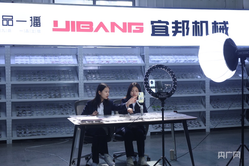 宜邦机械主播正在进行线上直播(央广网记者 李瑶 摄)