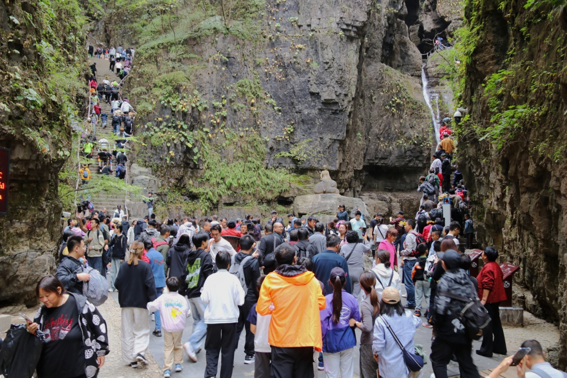 为让游客游得放心,面对假日游客量大的实际情况,野三坡景区提前准备,充分运用智慧化建设成果,实现对景区内人、车、物、环境等要素的精准感知与协同管理。景区通过“野三坡智慧景区”小程序,实施分时段预约与智能导流,并在关键时间节点和重点部位安排1000余人加强服务值守。假期期间,景区交通网络运行顺畅,游览动线高效合理,安全、公平、有序的游览环境赢得了游客广泛赞誉。