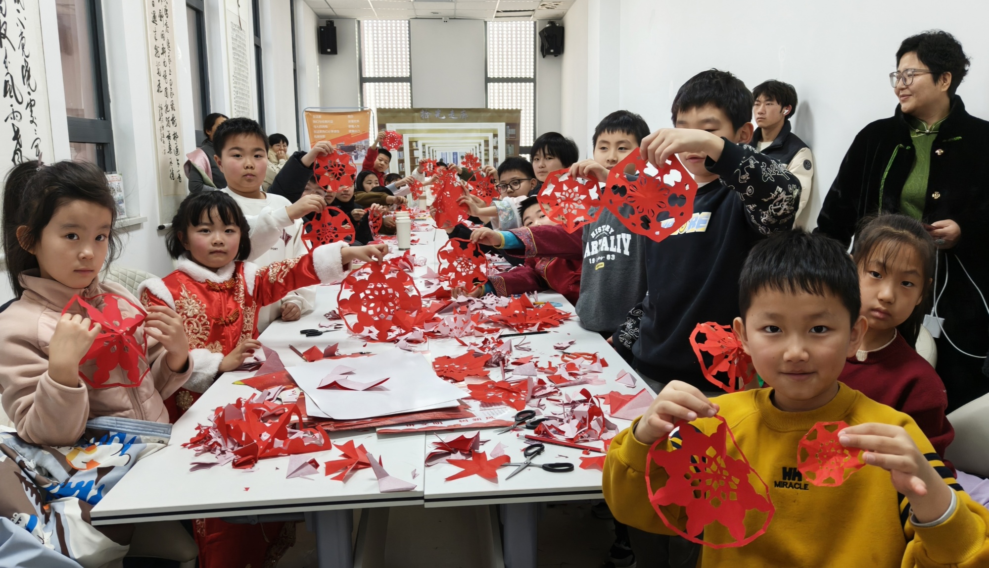 据了解,寒假公益托管班由蠡县文化广电和旅游局、蠡县新时代文明实践中心及蠡县图书馆共同打造。托管班以“巧手剪纸迎新春”主题活动拉开序幕,公益讲师结合剪纸历史渊源及春节民俗,解读生肖、窗花吉祥寓意,分步演示折纸剪裁技法,手把手指导孩子握剪运刀。