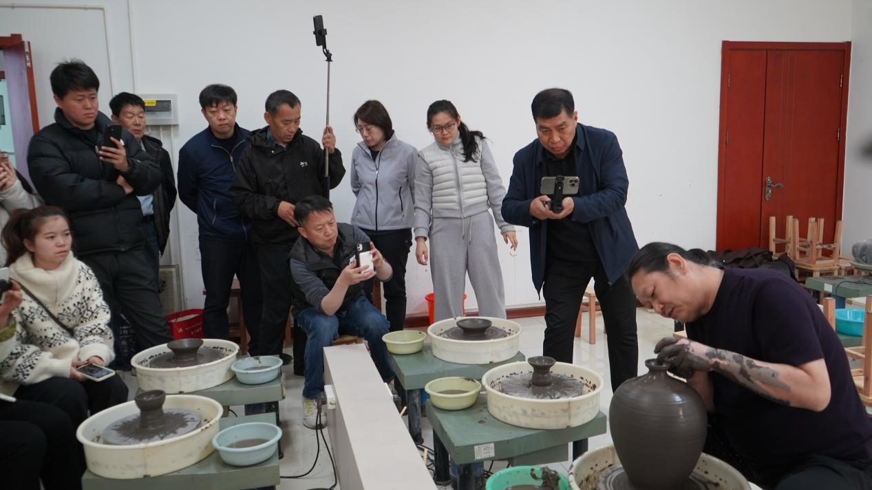 采风团在讲解中领略曲阳雕刻两千余年的发展历程,近距离观看国家级非物质文化遗产项目定瓷烧制技艺代表性传承人庞永辉的拉坯展示,体验定瓷拉坯工艺,亲手触摸非遗的温度。