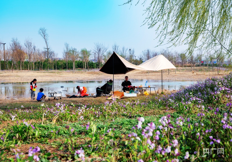 游客在雄安郊野公园露营(央广网发 陈世豪 摄)