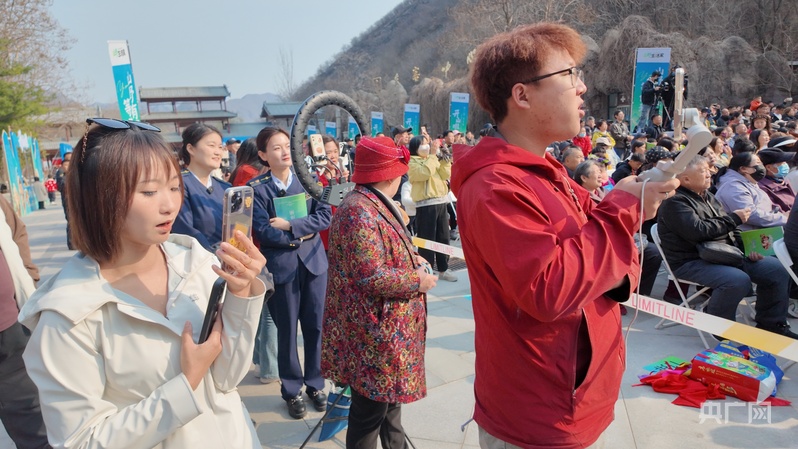 这一幕,被现场的无数游客用手机记录下来。不少主播们也架起设备开启直播,镜头里的太行雄姿、民俗盛景与热闹人群,通过网络传向全国各地,让这场春日盛会在线上线下持续升温。