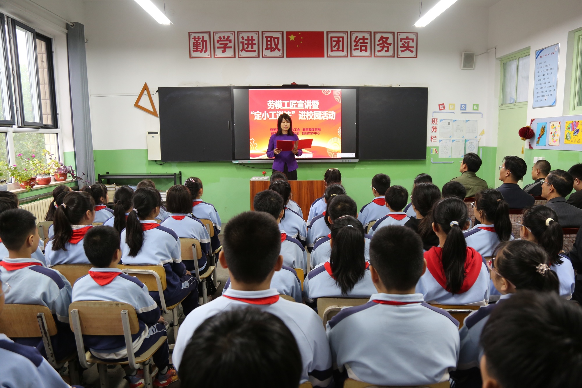 日前,河北省定兴县在北河镇刘家庄中心小学举办劳模工匠宣讲暨“定小工说法”进校园活动,该校50余名师生代表参加。