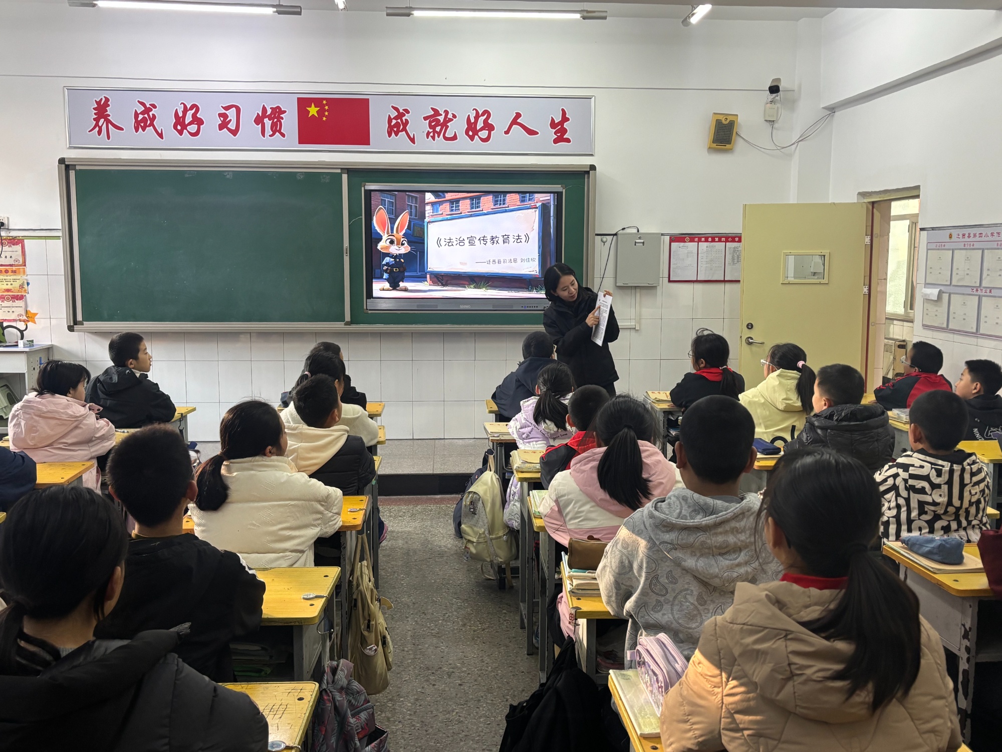面向小学生,播撒法治启蒙“种子”。司法所工作人员化身“法治教师”走进校园,将抽象法条转化为生动课堂。通过案例分享、情景模拟、互动问答等趣味形式,围绕未成年人保护、交通安全、校园欺凌防范等主题展开讲解,把生硬的法律知识变成孩子们听得懂、记得住的“成长指南”,在潜移默化中播下尊法守法的种子,帮助小学生提升自我保护意识与法治素养。