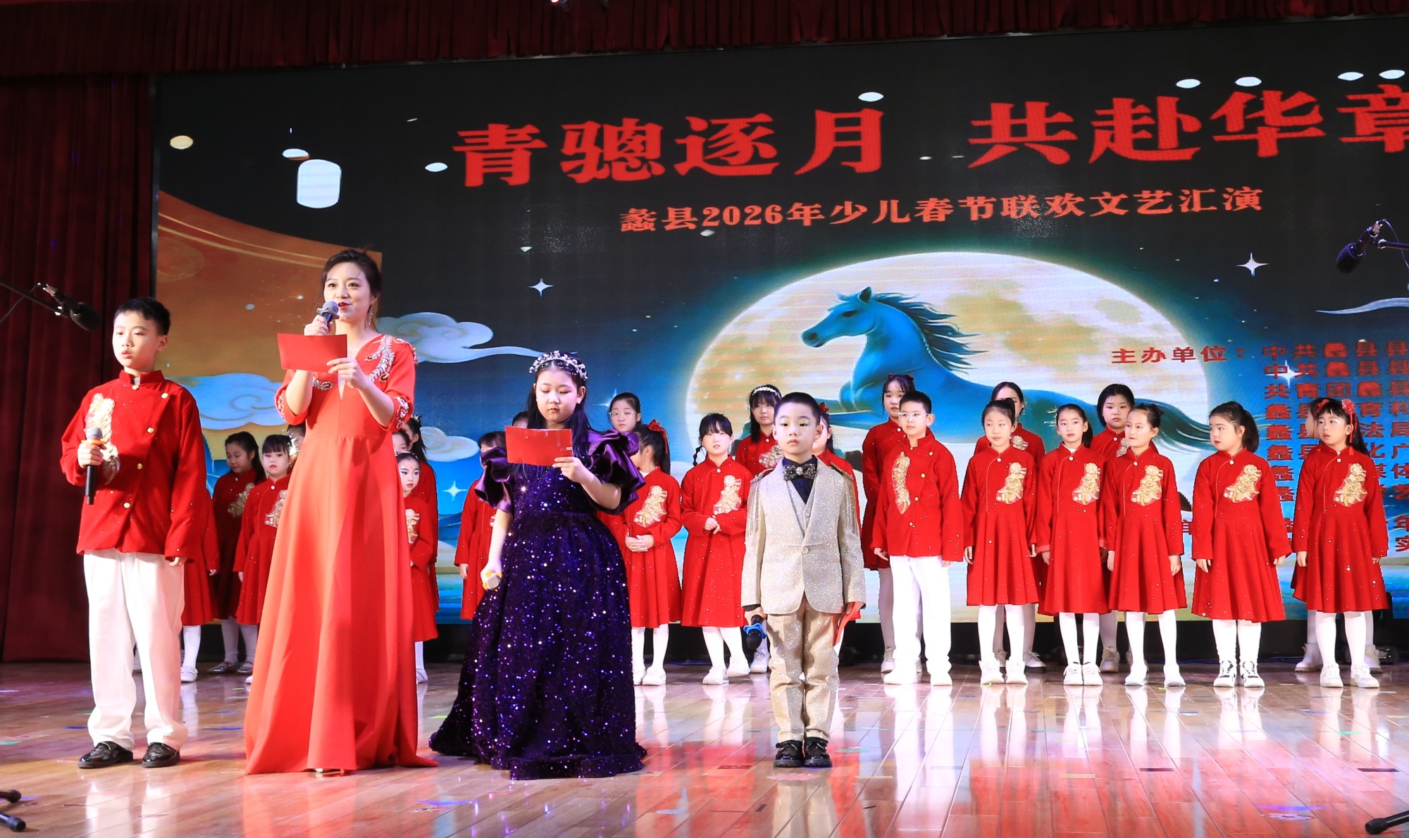锣鼓喧天年味浓,少儿欢歌贺新春。2月8日,由中共蠡县县委宣传部、蠡县教育和体育局联合主办,蠡县青少年活动中心承办的 2026 年“青骢逐月 共赴华章”少儿春节联欢会在蠡县第二实验小学圆满落幕。130名少年儿童登台献艺,为现场百余名师生、家长及共建单位代表献上了一场兼具思想性与观赏性的新春文化盛宴。
