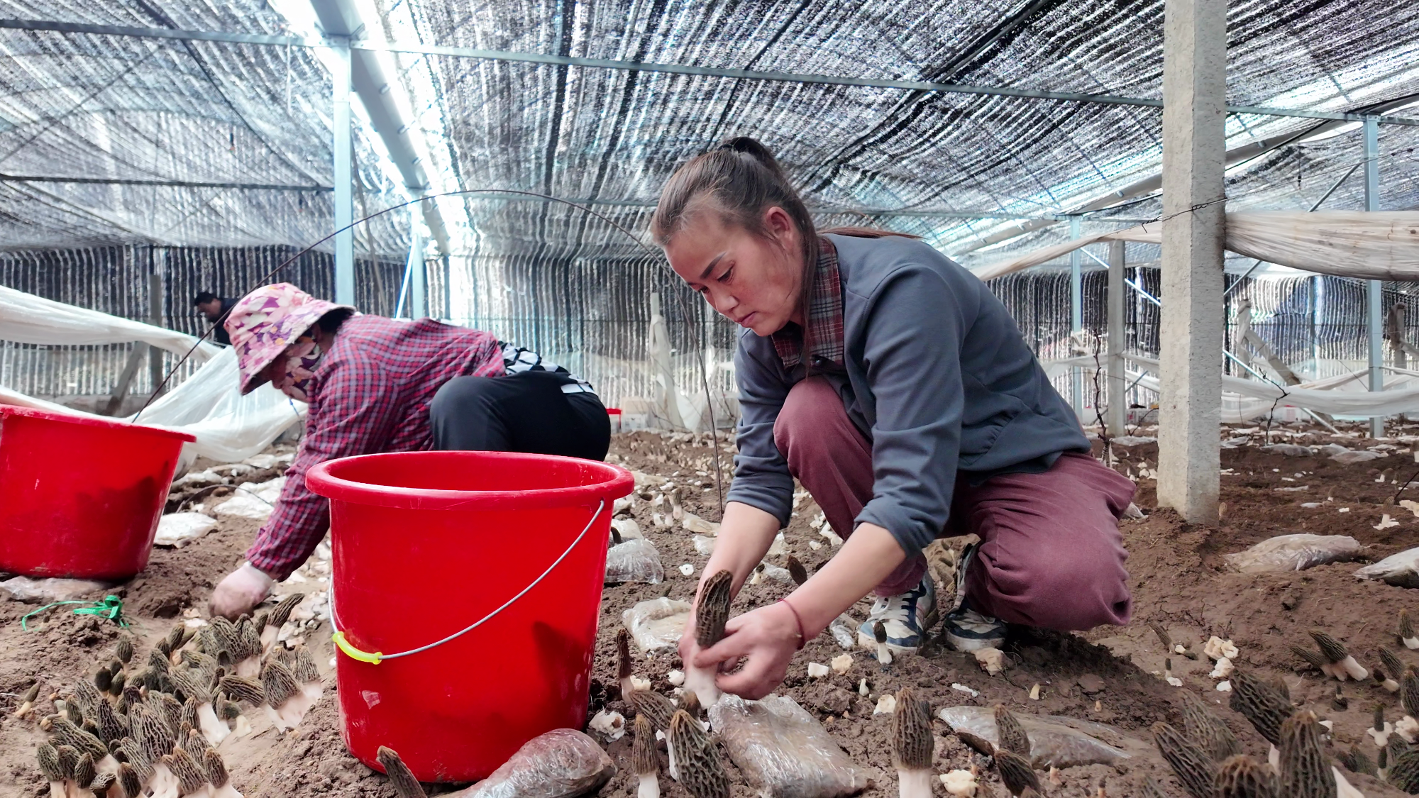 在收获期间,基地优先吸纳附近村民就业,提供播种、采收、分拣等多种岗位。采摘高峰期,基地可吸纳周边300余名村民就近就业。“我就是附近村的村民,每天过来采摘羊肚菌,一天能挣一百块钱左右,既能照顾家里,又能增加收入。”村民魏瑞青说。