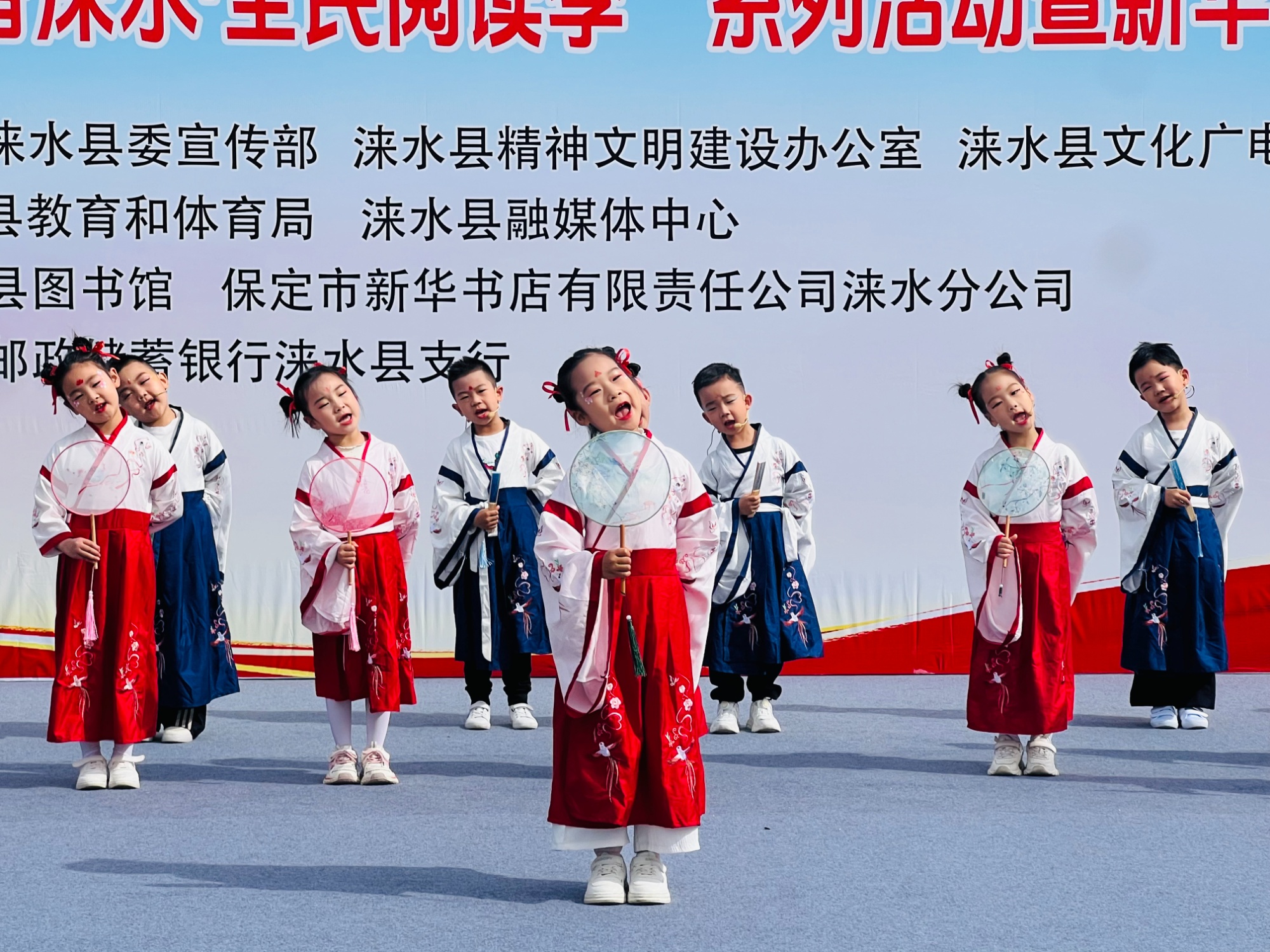 活动现场,8名优秀全民阅读推广人、8个书香家庭、6所书香校园、6个书香单位获得表彰。榜样力量正带动更多群众参与阅读、推广阅读,让书香融入家庭、校园与单位。诵读展演环节,《崛起的中国》《我的新时代进步宣言》等精品节目以声传情、以文载道。来自涞水县幼儿园的孩子们身着汉服,在音乐伴奏下齐诵《书香少年上春山》,“如切如磋,如琢如磨”的琅琅书声引得现场居民纷纷驻足拍照。