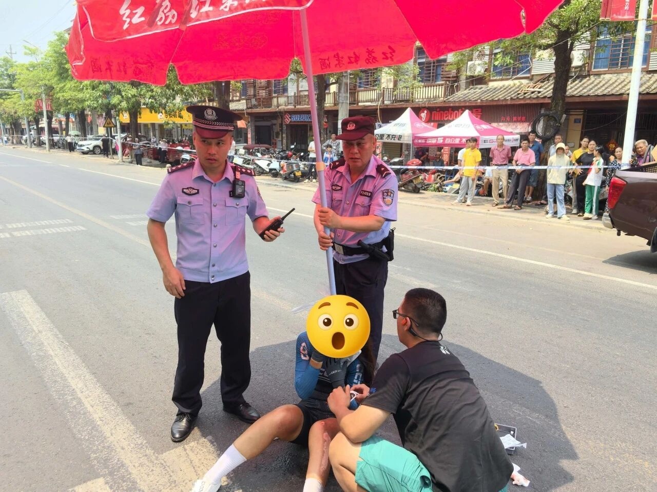 环岛赛白沙段:运动员中暑摔倒 公安紧急施救助其脱险