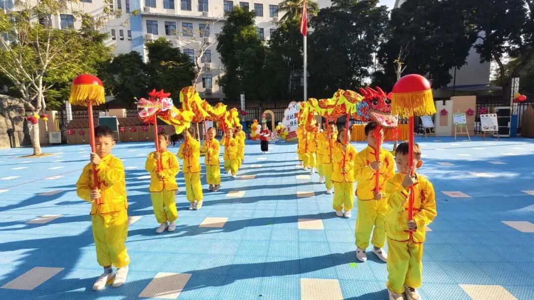 保亭黎族苗族自治县机关幼儿园小朋友“舞龙灯”庆祝元旦。