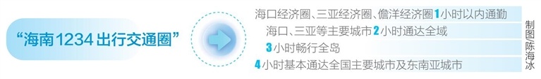 《纲要》明确,到2035年,海南将实现省内省外互联互通、市(县)级节点立体连通,综合交通运输服务能力和品质不断提高,旅客联程运输便捷顺畅,货物多式联运经济高效,基本实现“海南1234出行交通圈”(海口经济圈、三亚经济圈、儋洋经济圈1小时以内通勤,海口、三亚等主要城市2小时通达全域,3小时畅行全岛,4小时基本通达全国主要城市及东南亚城市)。全面融入我国“全球123快货物流圈”(国内1天送达、周边国家2天送达、全球主要城市3天送达)。