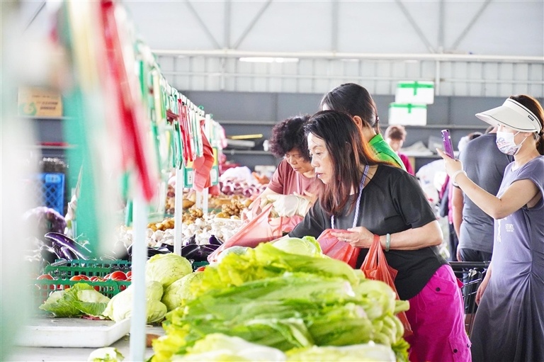 市民游客在三亚“菜篮子”网点选购蔬菜。张慧膑 摄