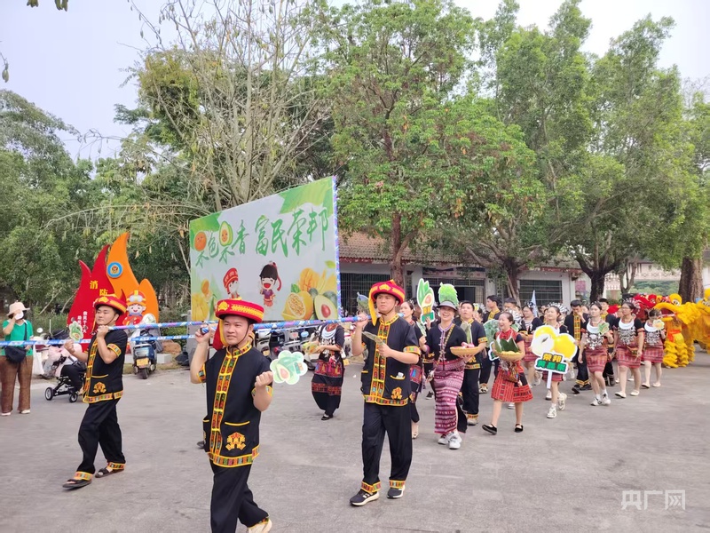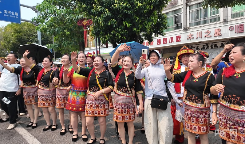记者看到,每个乡镇方阵都特色鲜明,展示着各自的发展成果:打安乡的队员手持兰花,彰显当地特色产业风采;元门乡的队员们手持电商包装的茶叶、蜂蜜,展现数字经济对乡村的带动作用;青松乡则展示 “南药之乡、魅力青松” 的新面貌…… 围观群众纷纷举起手机记录这一热闹场景。“这几年家乡变化太大了,路宽了、灯亮了、腰包也鼓了,能参与巡游展示家乡成果,我特别骄傲!” 来自青松乡的黎族王阿哥对记者说。