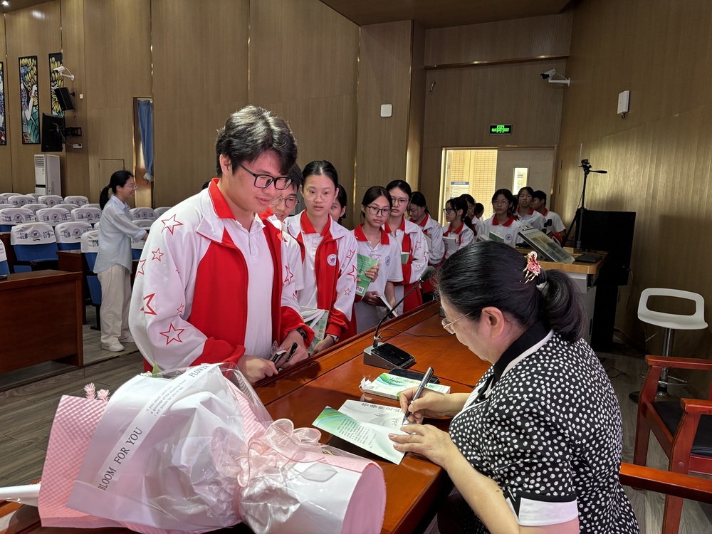 活动旨在落实全民阅读部署,推进“书香陵水”与书香校园建设。现场设置了主题展板和书籍展台,循环播放人文朗诵音频,营造浓厚的沉浸式阅读氛围。著名作家孙晶岩受邀主讲。她结合亲身经历,分享《书香照见山河》创作历程,讲述书中山河故事与人文细节,解读“书香与山河相融”的内涵,传递家国情怀与文化担当。针对中学生特点,她传授了阅读方法与写作技巧,鼓励大家以阅读拓宽视野、树立理想,引发全场共鸣。互动环节,学生们踊跃提问,孙晶岩耐心解答,现场交流氛围浓厚。