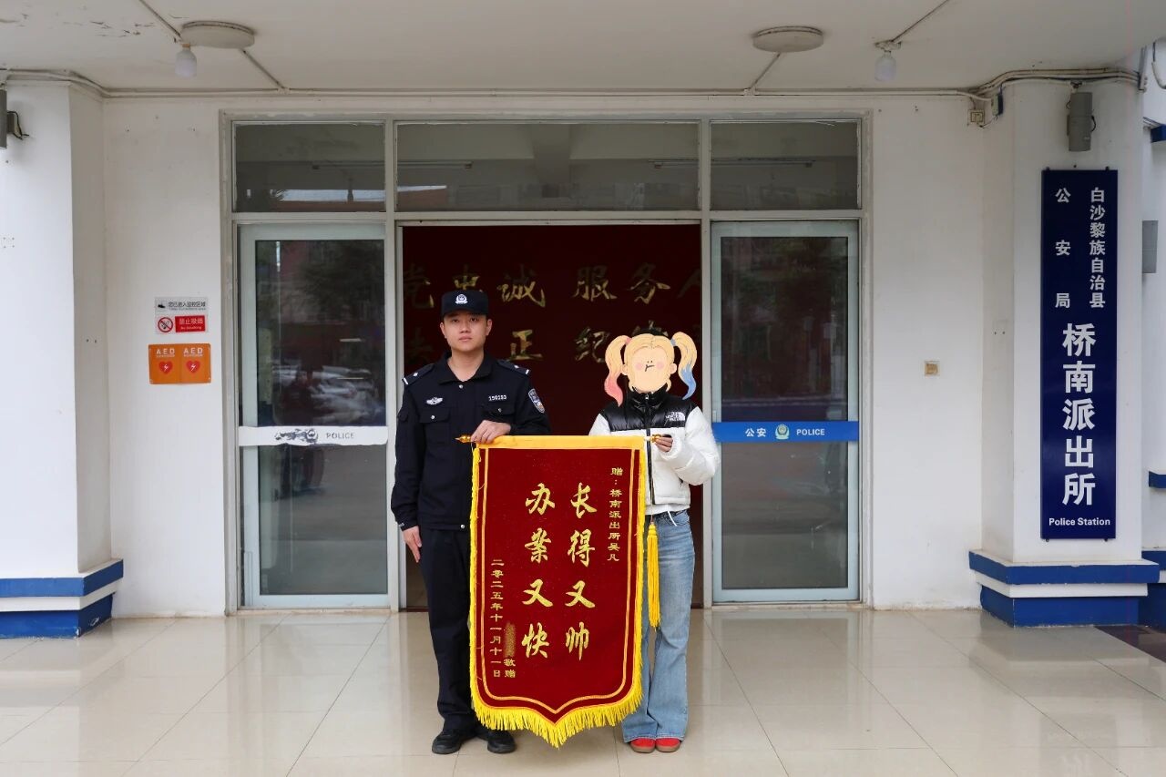 一面红彤彤的锦旗,一句诚挚的感谢,为桥南派出所忙碌的日常增添了一抹暖心的色彩。近日,王女士将一面书写着“长得又帅,办案又快”的锦旗,交到民警吴凡手中。锦旗背后的故事,是一场情与法的碰撞,更是一次“枫桥经验”在基层的生动实践。