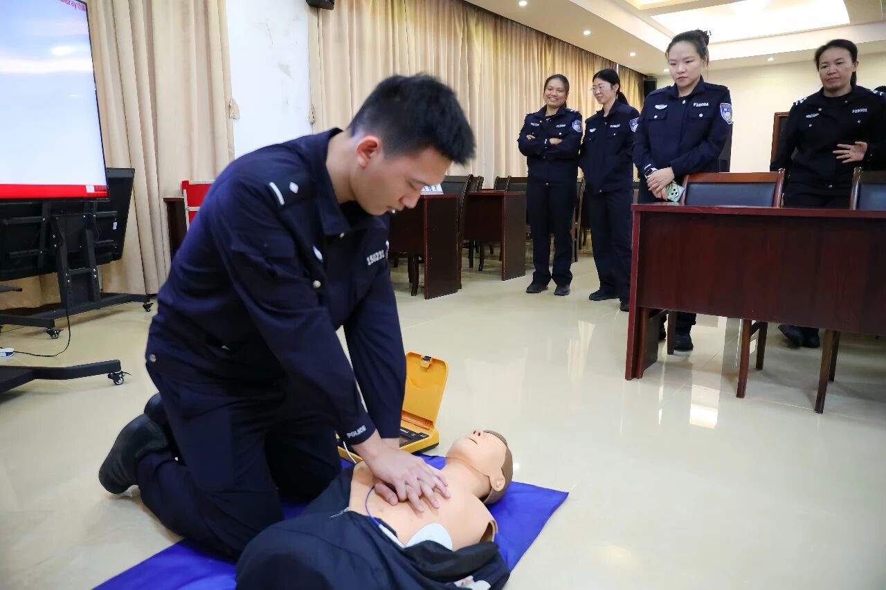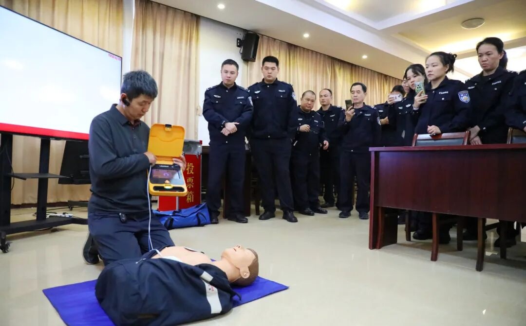 12月1日,海南省白沙黎族自治县公安局组织开展全员AED急救技能培训。