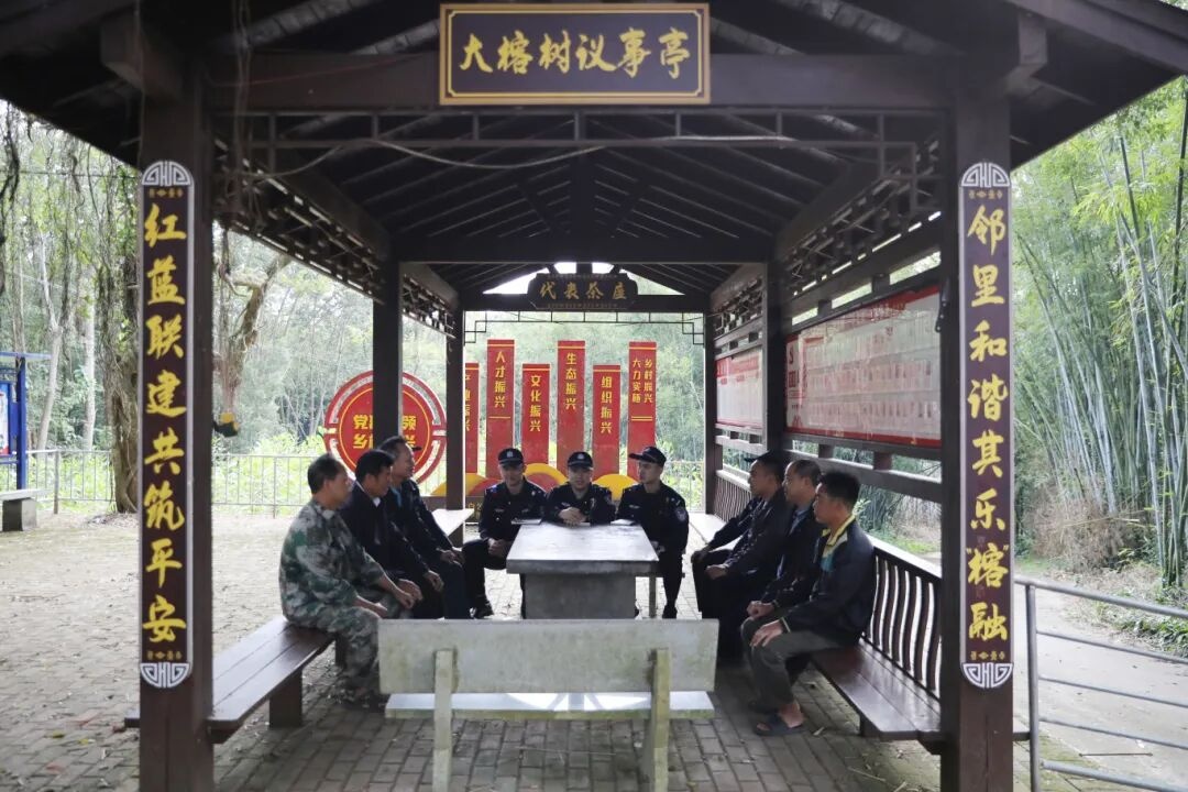 在七坊镇长龙村委会,一棵百年大榕树郁郁葱葱,树荫下的“榕树下的议事亭”已成为一道独特的风景。这里没有严肃的调解室,只有小板凳、热茶水,民辅警、村干部和群众围坐一起,在闲聊中说开矛盾、化解心结。