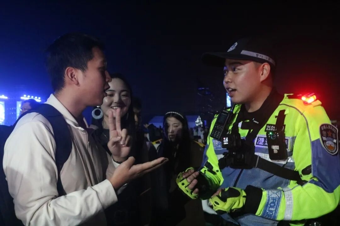 此次安保工作中,警方还创新交通安全宣传形式,开展趣味十足的交通安全街采挑战活动。现场群众只需准确答对15道交通安全知识题,或一分钟内列举12种交通违法行为,即可获得交警小熊、定制抱枕等暖心礼品。“骑电动自行车正确佩戴安全头盔,属于遵守哪条安全规则?”民警的提问引发群众踊跃参与,大家在轻松互动中“玩中学、学中悟”,深化了交通安全认知。获奖者还与民警共同喊出“文明守法,平安回家”“新年出行,安全相伴”的安全提示,让安全理念融入跨年夜的温馨氛围。
