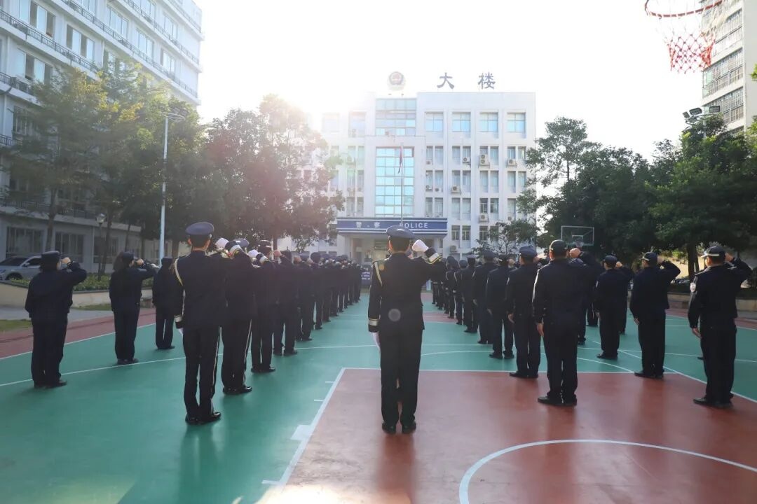 上午9时,仪式在雄壮的《中国人民警察警歌》中开始。护旗方队步伐铿锵,护卫警旗走向升旗台。伴随着歌声,警旗冉冉升起,全体民辅警面向警旗庄严敬礼,心中激荡着忠诚与荣耀。
