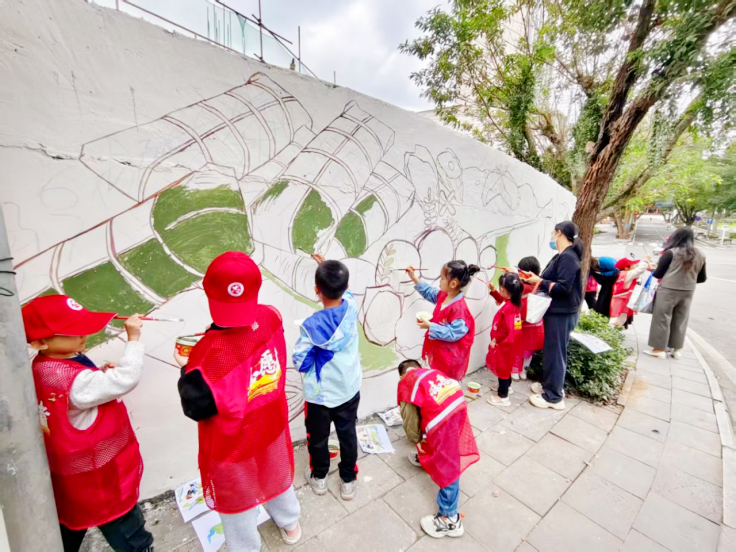 “这个填什么颜色呢?”“是绿色哟!”在县委大院篮球场和牙叉南路围墙边,一场别开生面的墙绘活动如火如荼。孩子们天真发问、志愿者耐心指导、家长会心微笑,大家围绕文明标语、传统美德、城市风貌等主题勾勒涂抹,原本斑驳的老墙渐渐“活”了起来,成为传播文明理念的露天画廊。过路的居民不时驻足,有的还加入其中,递支笔、添片色,共同扮靓家门口的风景。“这个‘穿着黎锦的阿姨’我很喜欢,所以我在这里填色,我太喜欢这个活动啦。”市民符恒睿拿着画笔说道。带着孩子参加的市民符美霞说:“用画笔描绘自己的家园很有意义,希望孩子能在活动中学习成长、增长见识。”