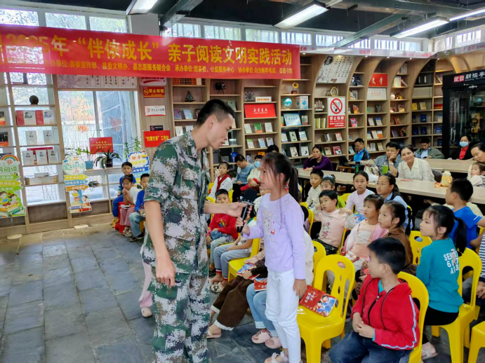 在县新时代文明实践基地的温馨空间里,“伴侬成长”亲子阅读活动悄然浸润心灵。教师以《红飘带少年心》为主题,引领亲子家庭重温长征史诗,生动的故事讲解、踊跃的抢答互动让孩子们听得入神。随后进行的模拟行军体验,大家在奔跑与协作中切身感受艰苦卓绝的岁月,将不畏艰难、团结向前的红色种子深植心田。