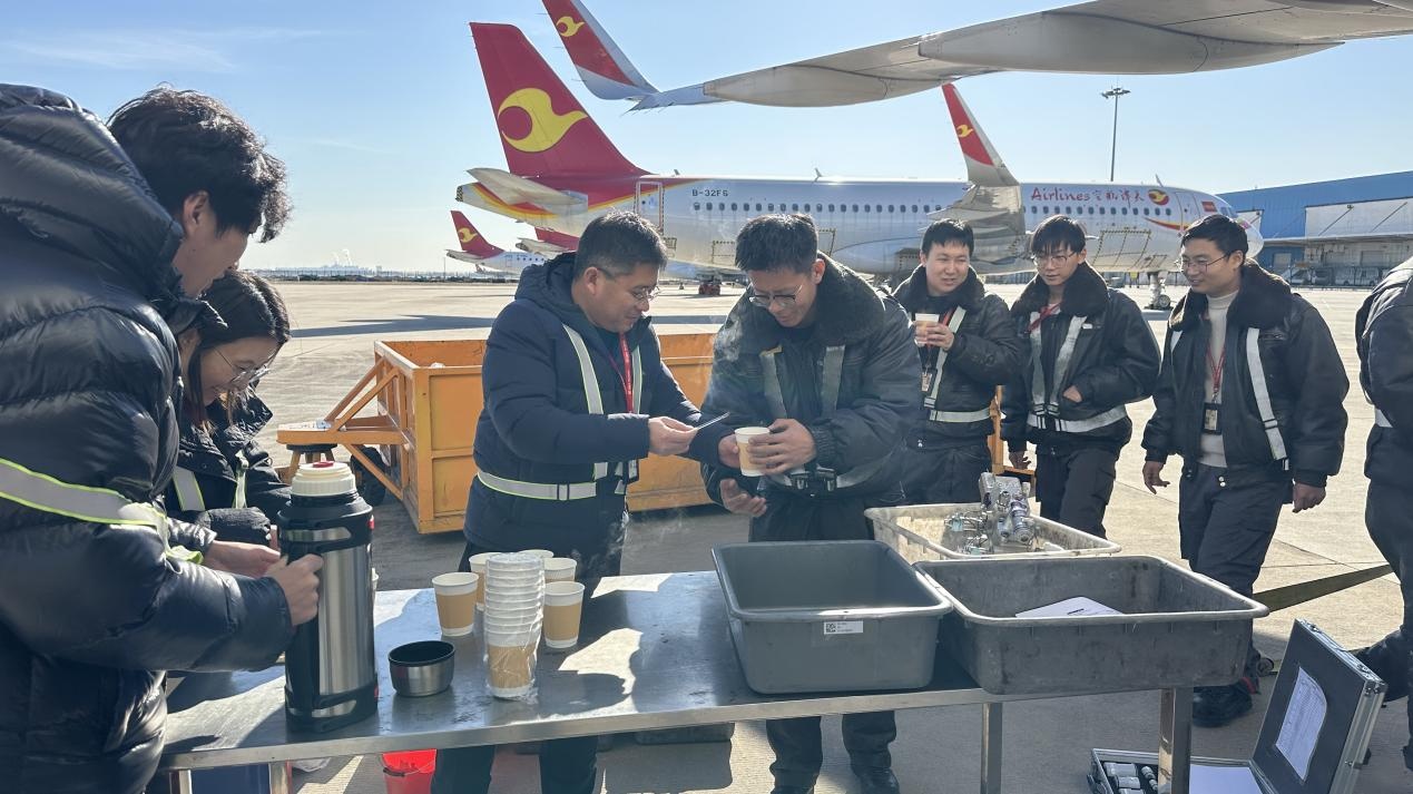 为切实做好春运期间员工关爱工作,海航技术坚持“以员工为中心”,统筹做好暖心服务与精神支持。在冬季保障方面,各单位根据属地气候特点灵活增加"送温暖"频次,动态补充各站点“暖心角”物资,在作业现场为一线人员提供姜茶、暖宝宝等物品。