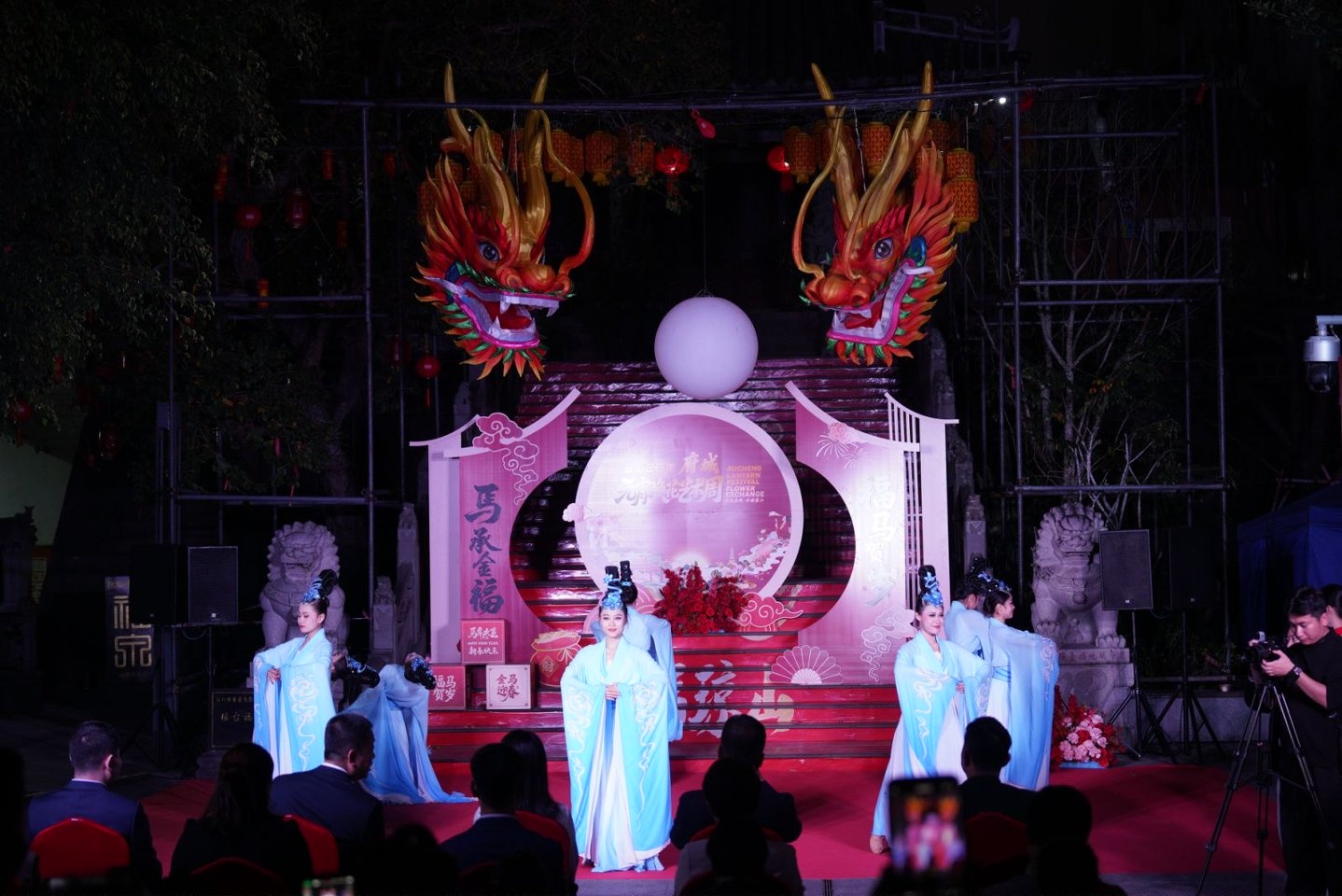 随后,在全场嘉宾与观众的共同见证下,龙珠与琼台福地灯组正式点亮。流光溢彩的灯光与古色古香的建筑交相辉映,勾勒出千年府城的独特韵味,现场掌声与欢呼声此起彼伏。