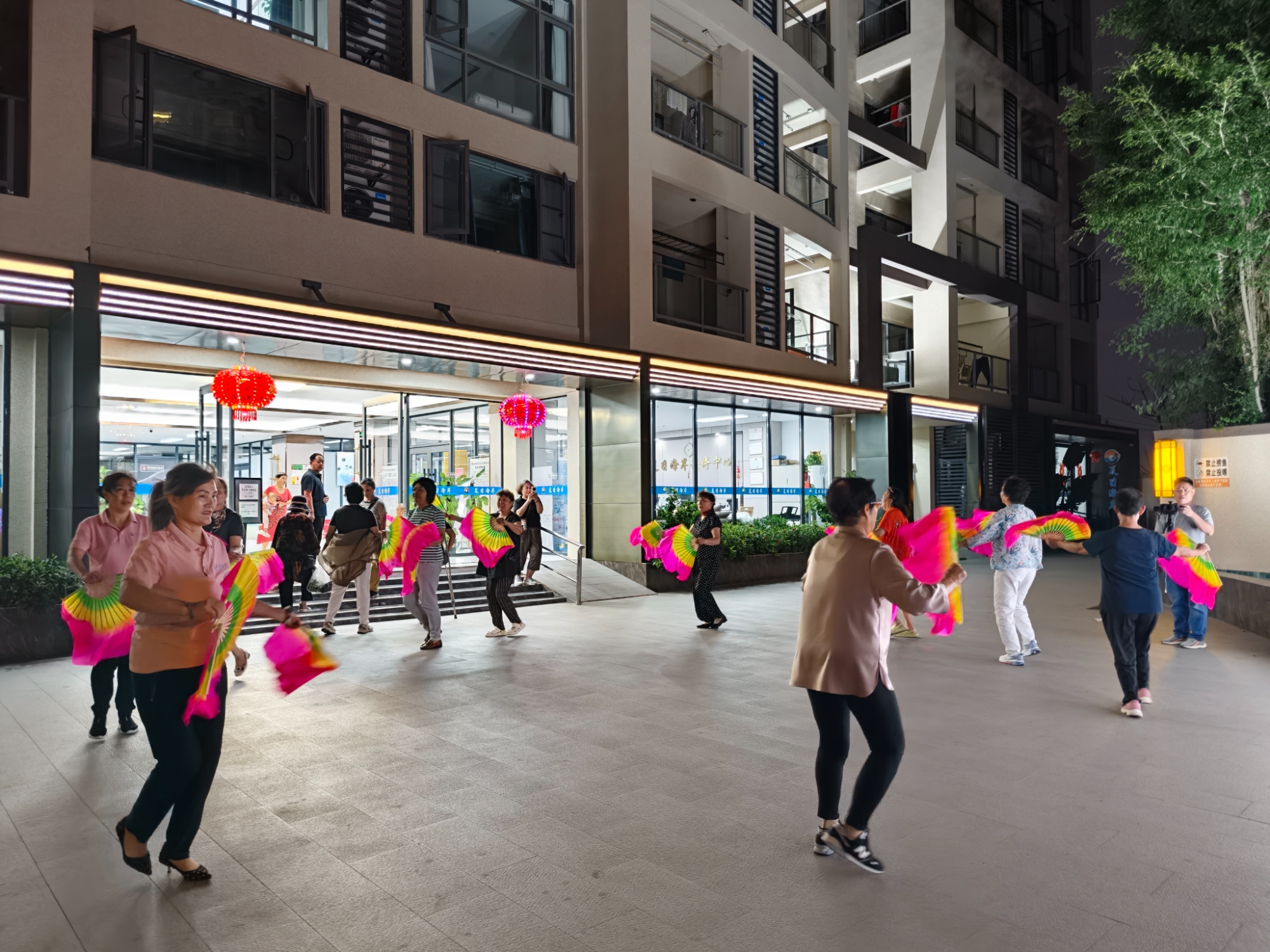 三亚夏日海岸旅居中心负责人李钰霞与旅居酒店候鸟老人一同跳秧歌舞。袁卅 摄