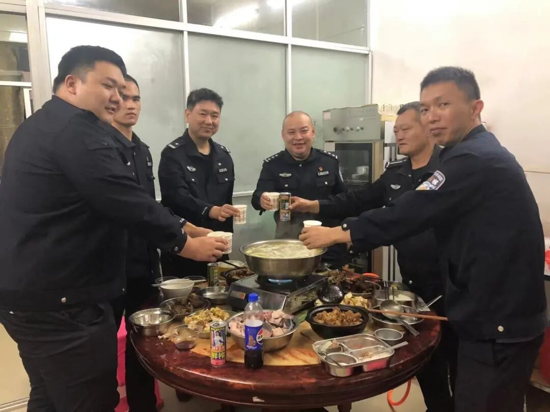 桌上的菜肴热气腾腾,一道道普通的家常菜,却吃出了浓浓的年的味道。大家一边吃着,一边聊着,笑声不断。平日里忙着出警办案,难得有这样的时刻,大家能坐在一起,像家人一样吃顿团圆饭。