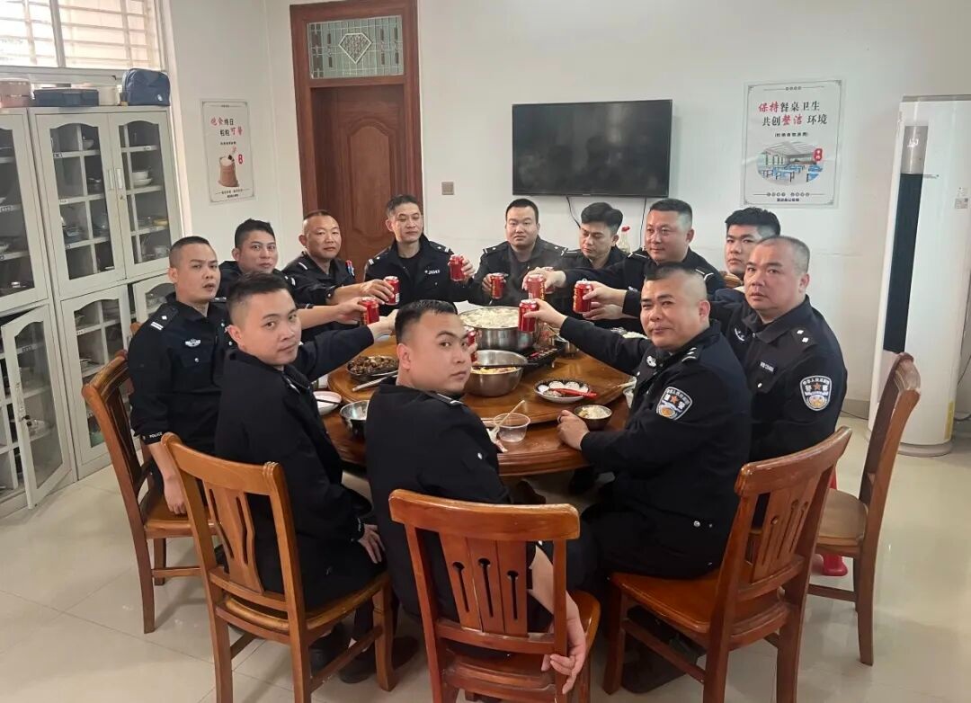 饭桌上,大家举杯互送祝福,在亲切的问候中共贺新春,在相互的勉励中许下新年的愿望——愿警情少一些,平安多一点。