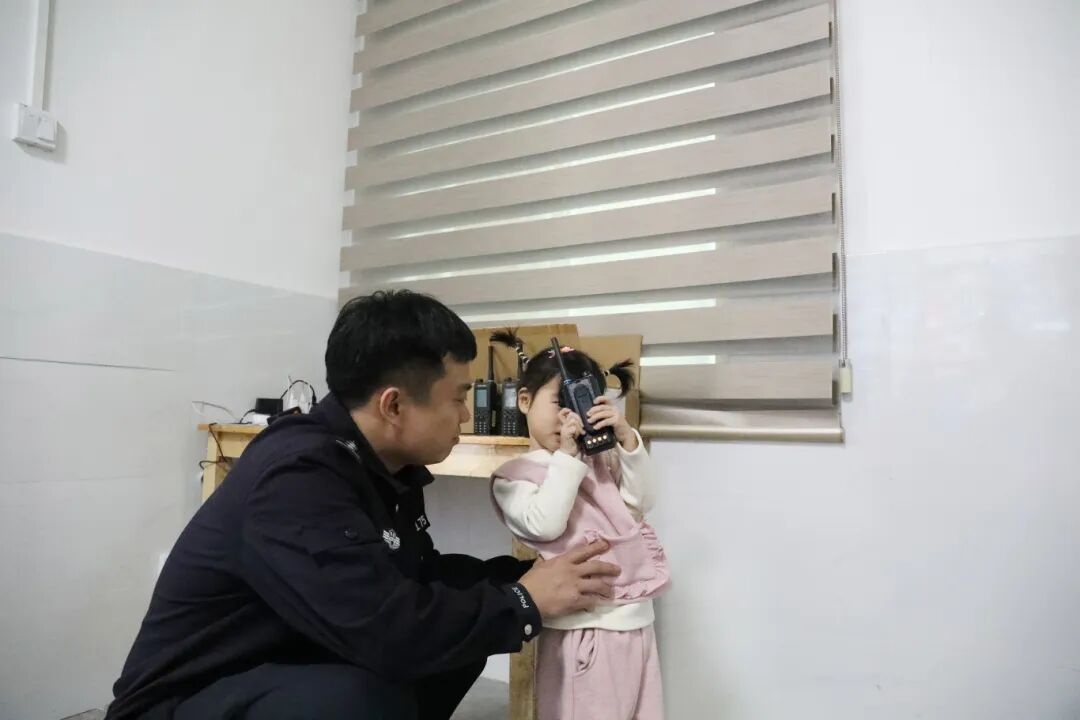 办公椅成了临时的“亲子座”,孩子好奇地抓起桌上的对讲机,学着大人的模样贴在耳边,咿咿呀呀地喊着“出警啦”。那一刻,仿佛在用稚嫩的方式,接过守护平安的接力棒。而一旁的母亲静静站着,目光里是藏不住的疼惜,更是沉甸甸的骄傲。