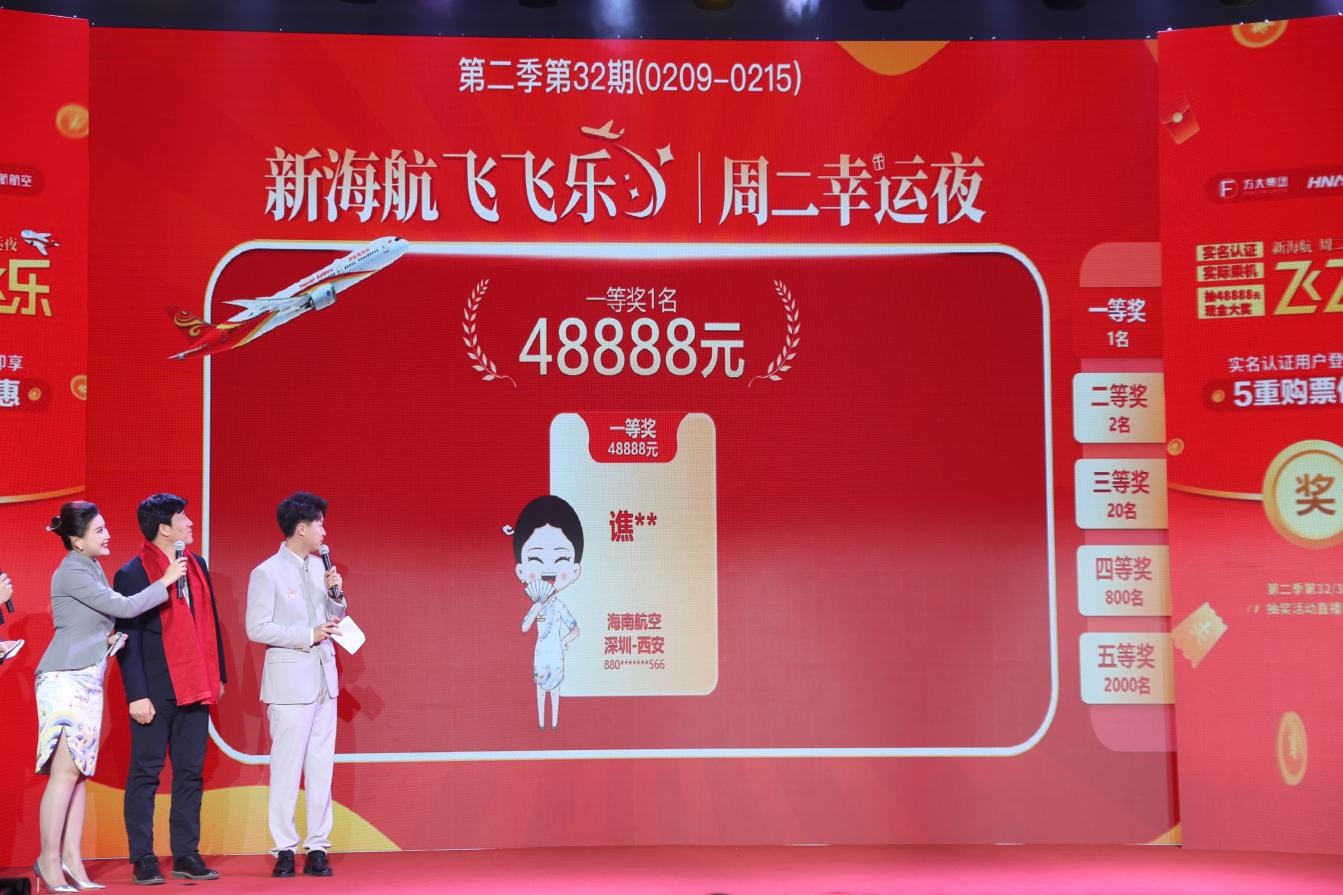 新海航“飞飞乐”周二幸运夜抽奖活动,作为新海航感恩回馈旅客、促进航空旅游经济发展的重点项目,每周二晚8点通过“海南航空”APP等平台直播抽奖。活动设置48888元、5000元、1000元、200元及50元多档现金奖励,符合条件的用户可享受多倍抽奖机会,单人最高可获8倍抽奖机会。(来源:新海航航空集团)