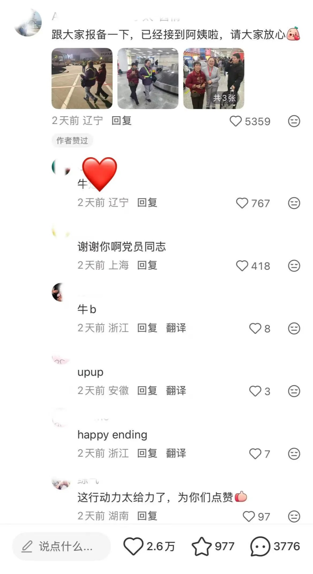 这份跨越千里的温暖守护,让老人及家属深受感动。家属特意在同一平台发布感谢帖,为一路上的好心人点赞致谢:“谢谢你们在这个路口帮助了我的妈妈,放心吧,下个路口我也会继续帮忙你们的爸爸妈妈,再次谢谢这一路上的好心人!”爱意与善举,正在这一刻悄然传递,生生不息。