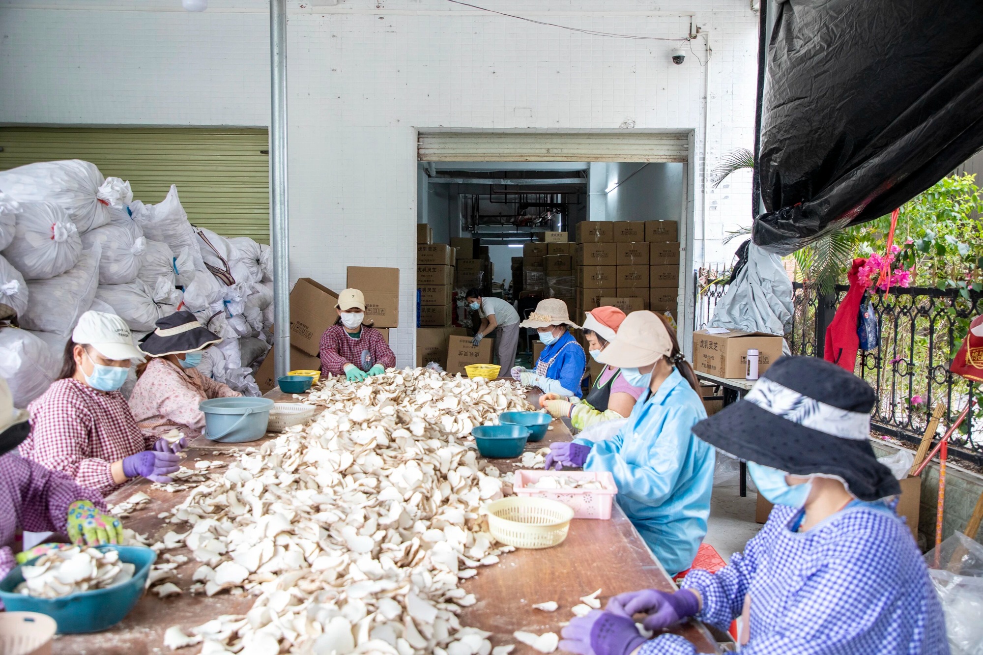 走进白沙立树生物科技有限公司的水岸仓库,一股虎乳灵芝特有的淡淡菌香扑面而来,映入眼帘的是一派繁忙景象。库房内,工人们正有条不紊地忙碌着,他们将晾晒好的干品按照客户需求仔细分拣分类,随后进行称重、装袋、封箱,每一道工序都衔接紧密、井然有序。