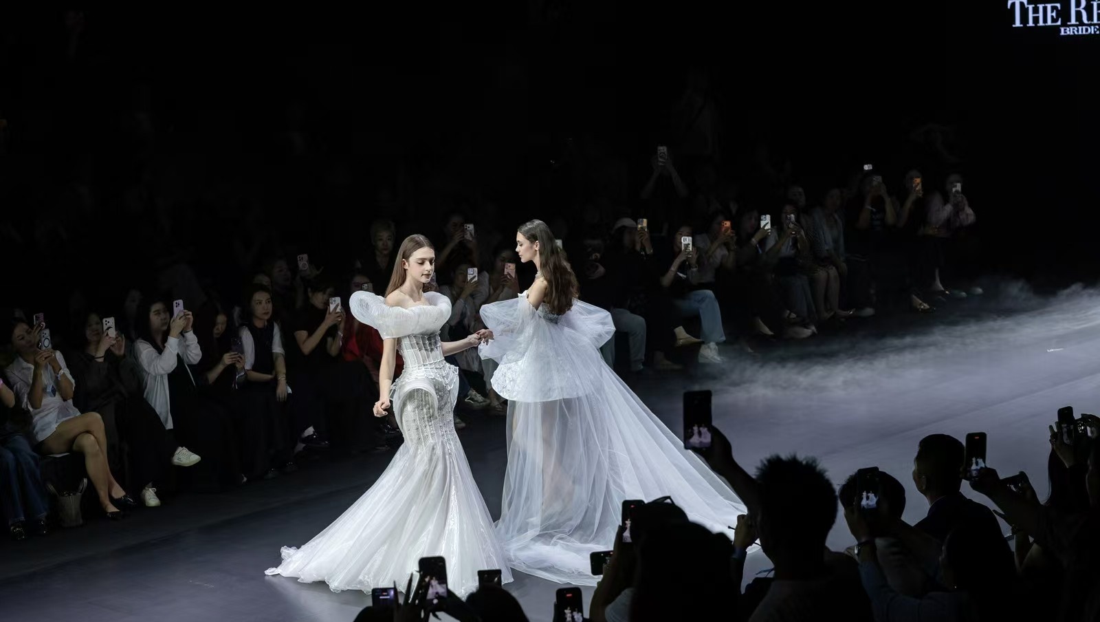 活动汇聚60个国际国内一线婚纱礼服及配饰品牌,展览面积突破1万平方米,较上届扩容50%,构建起全品类展示矩阵。法国高定品牌GEORGES HOBEIKA、意大利Peter Langner等首次进驻,带来全球前沿设计理念。同时,数十家国牌领军企业亮相“国牌聚鹿城”展区,尽显原创实力与文化底蕴。